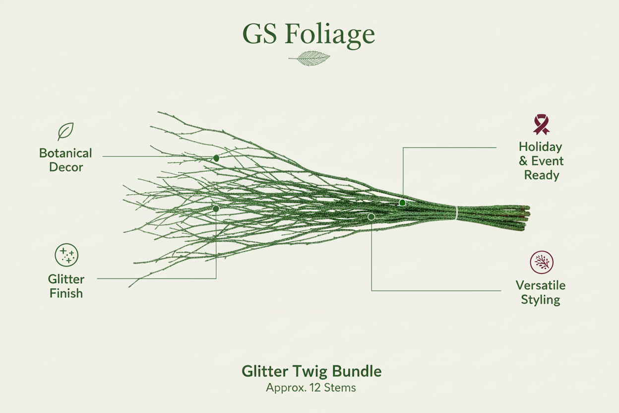 Add a touch of natural sparkle to your space with our Decorative Glittered Birch Branches — a graceful mix of organic texture and subtle shimmer. Each 4-foot branch is carefully selected for its beautiful shape and natural character, then lightly dusted with fine glitter for an elegant, festive finish.